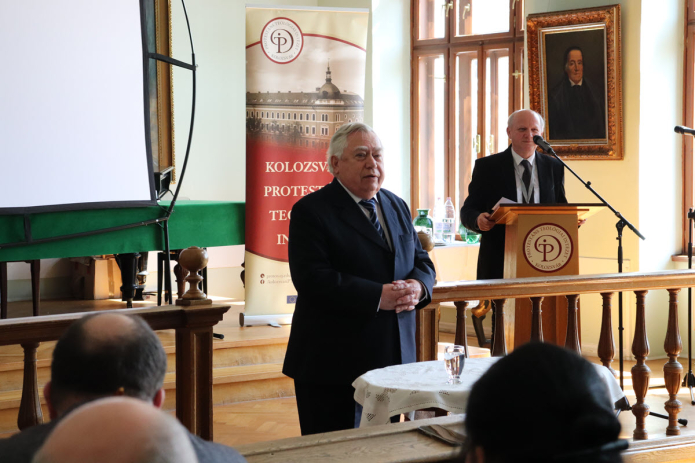 Kolumbán Vilmos József püspök a Zsolt 119,105 fényében hangsúlyozta a tanulás mindenkori fontosságát és felelősségét. A bibliai alapokon nyugvó tudás mint Isten világossága és mécsese nem csupán kiegészítője a tudományos ismeretnek, hanem annak igazi megvilágítója, értelemadója. Az igei hozzáállás nemcsak a konferencián elhangzó előadásokra alkalmazandó, hanem a mindenkori tanulmányokat, kutatásokat meghatározó „szent” feltételként is érvényesül. Ez az alázatos magatartás tükröződött Juhász Tamás, Teológiánk egykori tanárának életútján is. A 80 éves emeritus professzort – csendes tiltakozása ellenére is – Visky Béla méltatta néhány gondolatban, majd egy kisvideóban holland testvérek és Hermán János köszöntötte az ünnepeltet, felidézve a holland-erdélyi kapcsolatok legemlékezetesebb pillanatait. Juhász Tamásnak a generációkra gyakorolt hatásáról sokat lehetett volna beszélni, de ehelyett Visky Béla a Kicsoda az ember? c. tanulmányát idézte, mely szerint a mindenkori tanítványnak, teológusnak és lelkipásztornak a következő négy erényt érdemes megfontolnia: legyen mindig álmélkodó, jámbor, erkölcsileg igényes és messze néző. Az idézett tanulmány felhívása egybecsengett az emeritus professzor köszönőbeszédében a hallgatóságnak megfogalmazott tanácsával, felidézve azt a levelet, melyet egykor nagyapja, Tavaszy Sándor fogalmazott meg unokáinak: „Ragaszkodjanak az édesanyjukhoz, ennek mind a négy értelmében: elsősorban szülőanyjukhoz, de ne szakadjanak el a szülőföldtől, szeressék és maradjanak meg anyanyelvük kötelékében, és legyenek az anyaszentegyház ölelő karjai között otthon és biztonságban.”