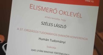 The Humanities Section of the 37th National Scientific Student Conference of Hungary was held between April 15-17, 2025, where three PTI students participated, earning a prize that enhanced the institution's reputation. |