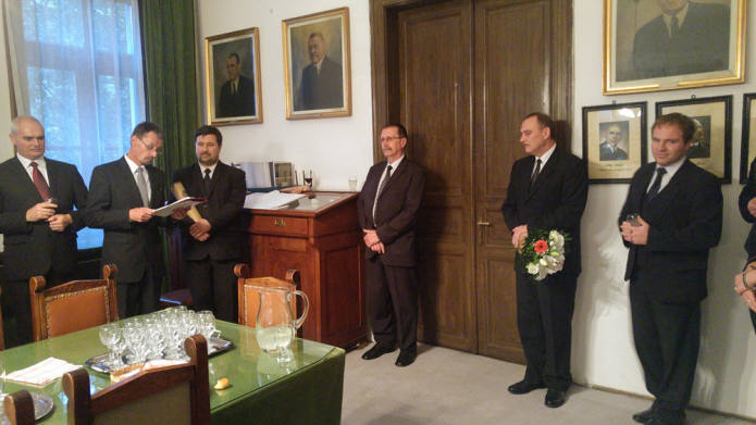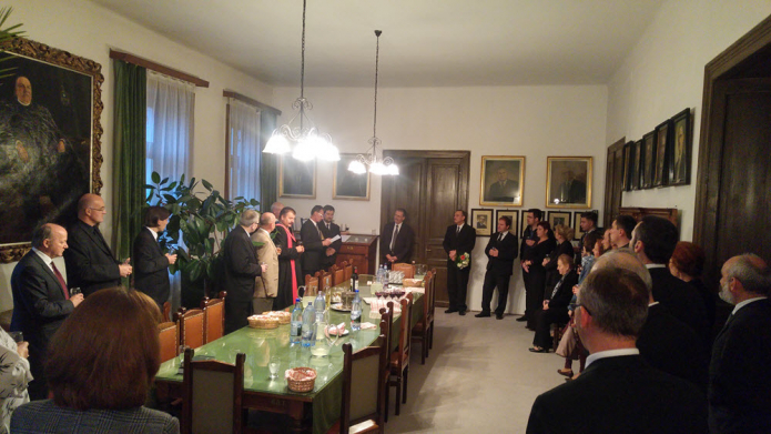 Azt a megtisztelő, de számomra nehéz feladatot kaptam, hogy ennek a tanévnek megnyitó ünnepélye után a régi és újabb tanárkollégák, a könyvtári alkalmazottak és a hivatali személyzet nevében mondjak köszönetet neked. A feladat azért nehéz számomra, mert ez érzelmileg is érint – nemcsak engem, hanem mindannyiunkat, akik itt veled szemben és melletted állunk –, s az ilyen érzelmekkel telített, nem hivatalos, hanem baráti és kollegiális légkörben, ahol kiszáradhat a száj és a mellkas szaporán kezdhet kapkodni levegő után, még a szó is elakadhat, és a kigondolt mondatok is összezavarodhatnak. Ezért is írtam le és olvasom köszönetmondó szavaimat.