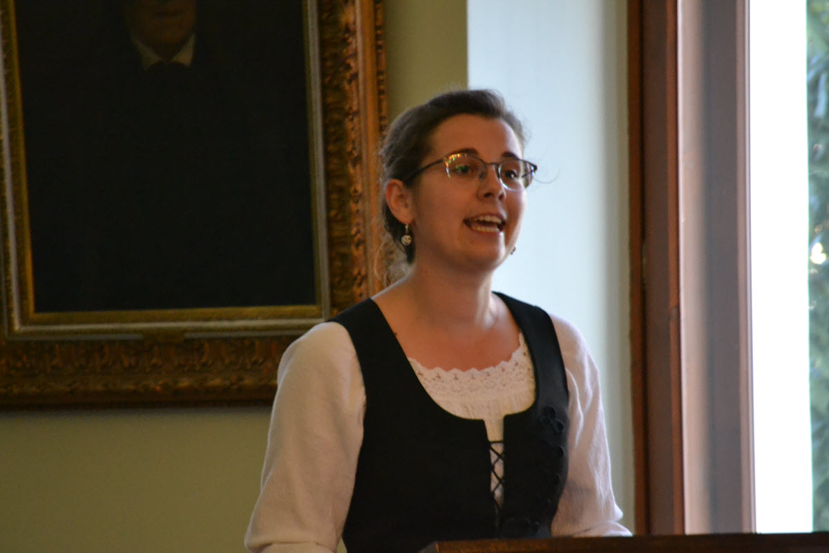 A kibúcsúzó magiszteris hallgatók nevében Tőtős Emese Brigitta mond beszédet