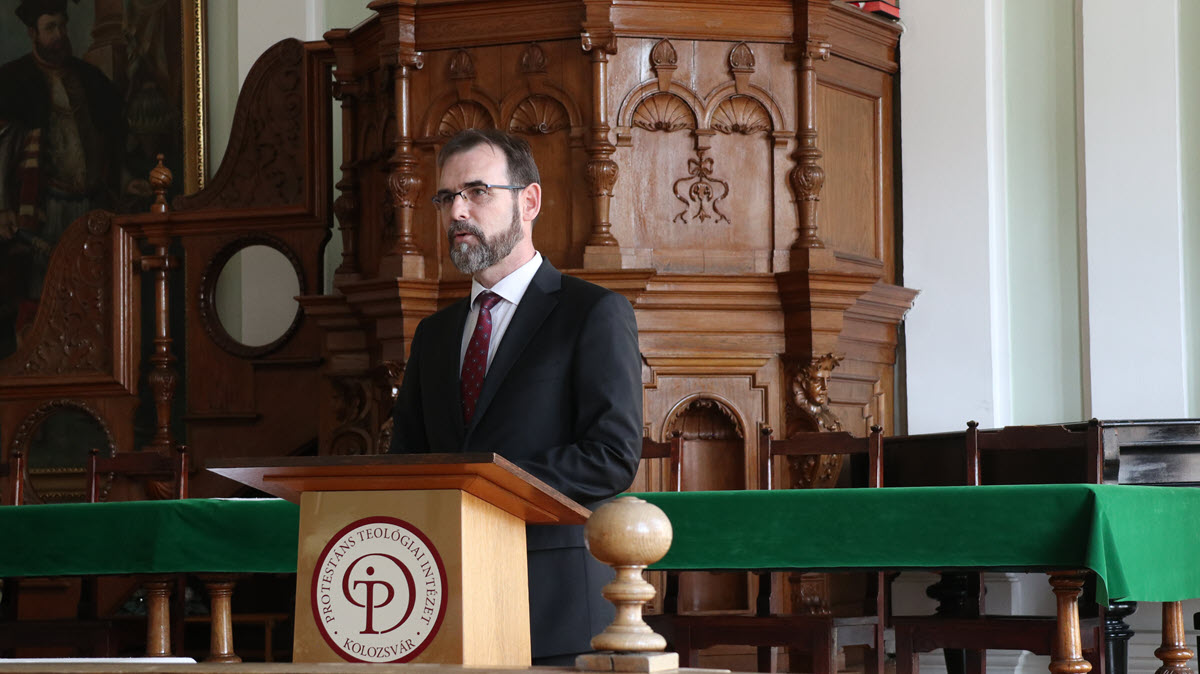 Kolumbán Vilmos József rektor köszönti az Adorjáni Zoltán tiszteletére egybegyűlteket