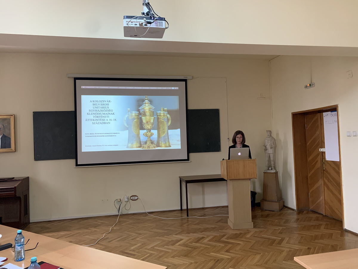 Szász Szonia a BBTE Református Tanárképző Karának elsőéves diákja előadást tart