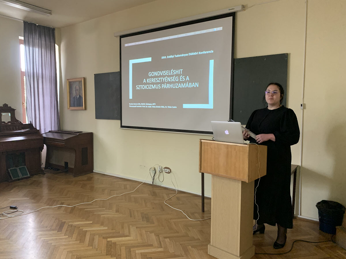 Demeter Ágnes negyedéves teológus hallgató előadást tart