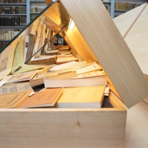 A koffer formájú kiállítótér a peregrinus kor hangulatát idézi.