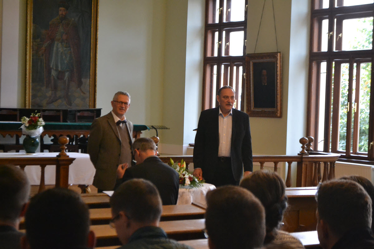 Kállay Dezső rektor köszönti Sven Grosset, a baseli Független Teológiai Főiskola képviselőjét