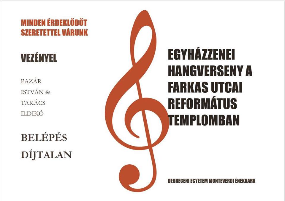 A Kolozsvári Protestáns Teológiai Intézet egyházzenei hangversenyt szervez a Farkas utcai templomban 2019. október 11-én 18 órai kezdettel. Fellép a Debreceni Egyetem Monteverdi Énekkara. Vezényel Pazár István és Takács Ildikó.