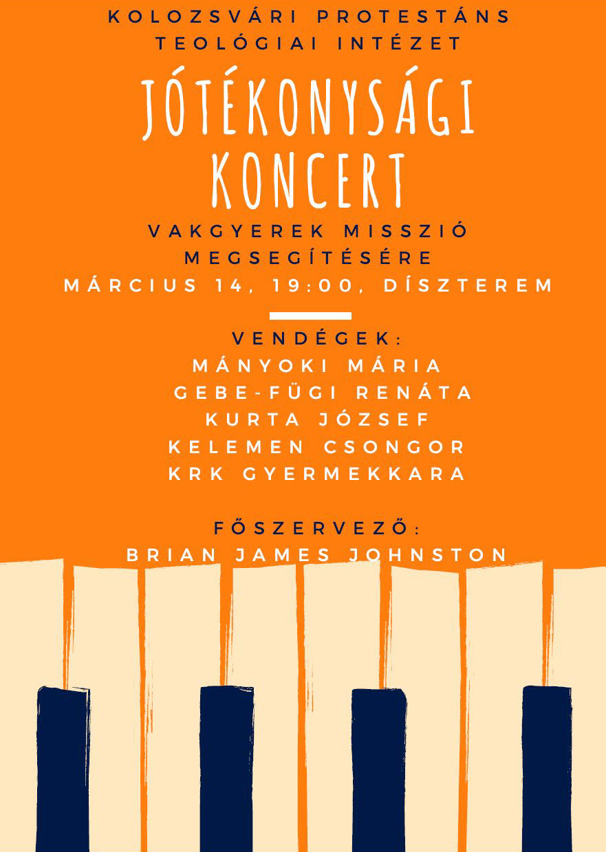 Brian Johnston: Jótékonysági koncert. Kolozsvár: Kolozsvári Protestáns Teológiai Intézet