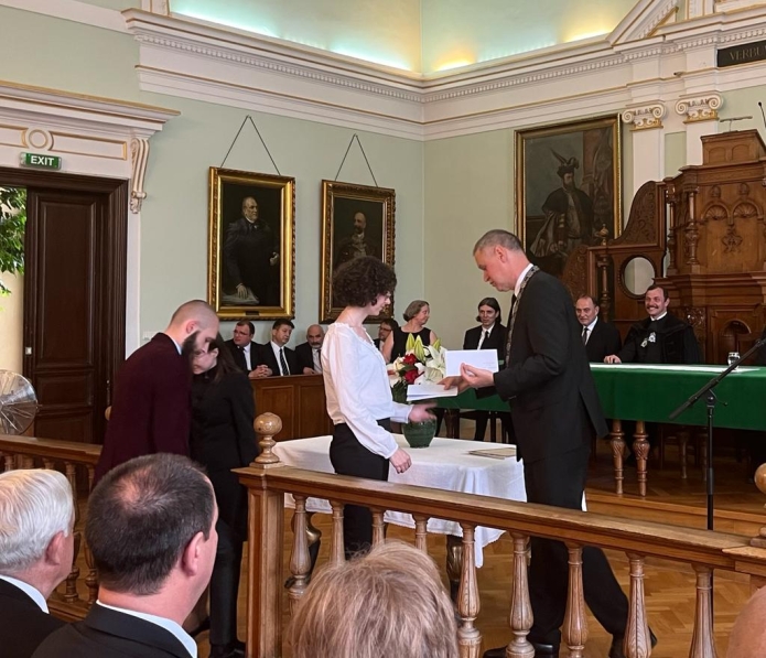 Az évértékelő beszédet követően került sor a diákság díjainak átadására. Az Intézet elismerését fejezte ki a 2022-2023. tanévben tanulmányi, tudományos, diakóniai, szervezési, vagy sport tevékenységek terén kiemelkedő eredményeket elérő hallgatóknak és teljesítményeiket könyvutalvánnyal jutalmazta.