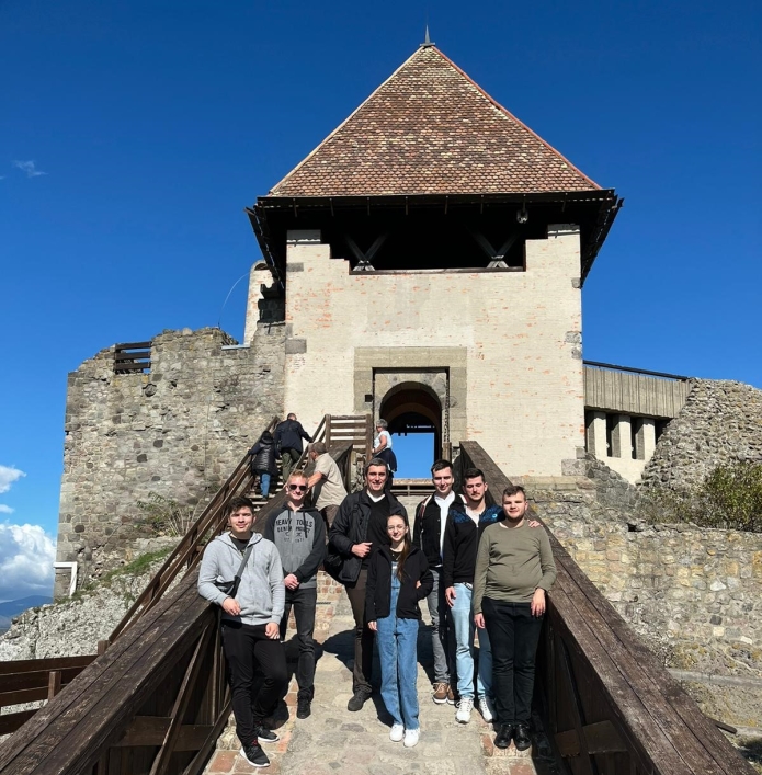 Pénteken először Visegrádra utaztunk, ahol megcsodálhattuk a Dunakanyar táját, majd ellátogattunk a királyi palotába, amely főleg Mátyás király által vált híressé, aki gótikus és reneszánsz stílusban újíttatta fel. Ezen kívül meglátogattuk a fellegvárat is. Érdekes volt számunkra, hogy az étkezőben úgy állították ki a terített asztalt, és viaszból az ételeket, mintha még ma is ott élnének középkori őseink, és éppen ebédhez készülődnének a palota lakói. Végül pedig Esztergomba utaztunk, ahol meglátogattuk az ikonikus Nagyboldogasszony és Szent Adalbert főszékesegyházat, a bazilika emeletén lévő, Magyarország leggazdagabb egyházi kincstárát, valamint az altemplomot.