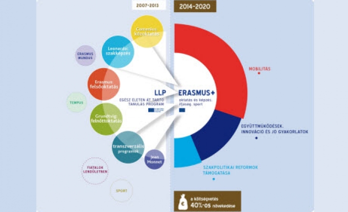 Az Erasmus+ az oktatást, a szakképzést, valamint ifjúsági tevékenységi területeket és a sportot is magában foglalja. A program 2014-2020-ig tartó szakaszában uniós szinten 14,7 milliárd eurós költségvetésből biztosítja több mint 125.000 intézmény és szervezet támogatását, illetve több mint 4 millió személy nemzetközi tapasztalatszerzését.