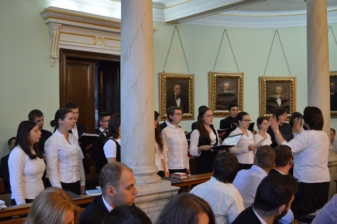 Az ünnepi eseményen fogadalmat tettek a frissen felvételt nyert első éves hallgatók. Ezt követően a kórus a Gaudeamusszal nyitotta meg az új tanévet.