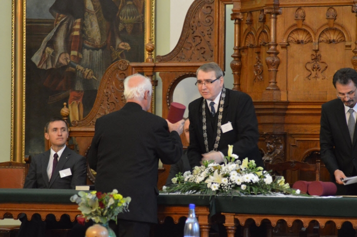 A jubileumi ünnepség kiemelt mozzanata volt a tiszteletbeli címek átadása. Dr. Herczeg Pál, a Budapesti Károli Gáspár Református Egyetem Hittudományi Karának emeritus tanára a kolozsvári Teológiai Intézet oktatóival régóta szoros kapcsolatot ápol. A magyar teológiai intézetek közötti kapcsolatot erősítő Coetus Theologorum konferenciáknak állandó résztvevője és lelkes támogatója volt. A Kolozsvári Teológiai Intézet tiszteletbeli professzori címet adományozott Herczeg Pálnak. A laudációt Adorjáni Zoltán mondta el.