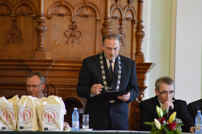 Akadémiai évértékelő beszédét Kállay Dezső, a Protestáns Teológiai Intézet újonnan megválasztott rektora a Filippibeliekhez írt levele 2. fejezetének 12-13. versével kezdte: "... Isten az, aki munkálja bennetek mind az akarást, mind a munkálást jó kedvéből." Rámutatott arra az elszánt akarásra és sokrétű fáradozásra, amely az elmúlt év intézeti tevékenységét jellemezte.
