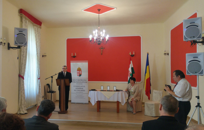Zákonyi Botond, Magyarország romániai nagykövete a Magyar Érdemrend Tisztikereszt polgári tagozat kitüntetését adta át Dr. Rezi Eleknek, a Teológiai Intézet oktatójának, egykori rektorának.
