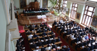 A vasárnapi évnyitó ünnepélyen egybegyűlt hallgatókat, tanárokat, intézeti alkalmazottakat, egyházi képviselőket és vendégeket a Teológiai Intézet rektora köszöntötte. Rektori beszédében az európai menekültügy dilemmáiról beszélt, konkrétan ennek az aktuális kérdésnek a társadalometikai vetületeiről, amely az egyház és ezzel együtt a teológiai oktatás számára komoly kihívást jelent. |