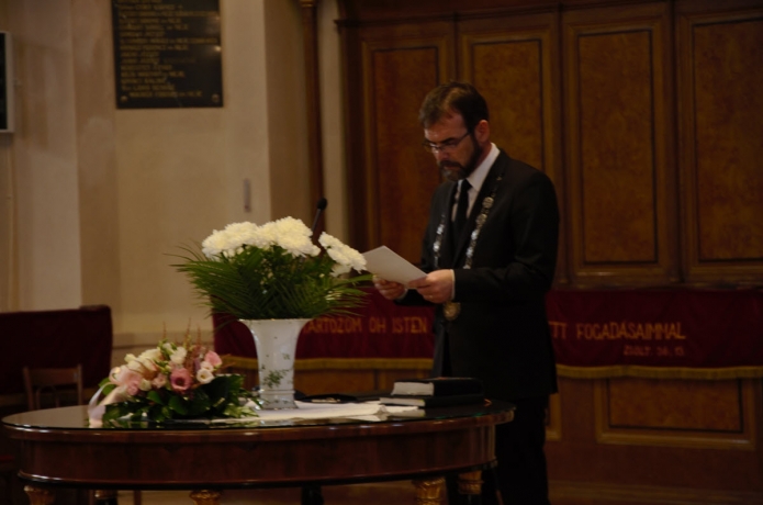 După discursul rectorului, studenții noi admiși la licență de teologie protestantă au depus jurământul lor tradițional. Dl. Szabolcs Kató va fi mentorul studenților din anul I.
