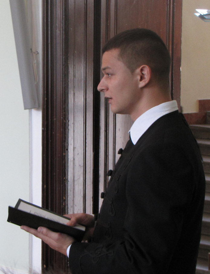 Slujba de ceremonia bazat pe Psalmul 48:13-15 a fost celebrat de Csűry István, episcop al Eparhiei Reformate de lângă Piatra Craiului. După depunerea jurământului, Kállay Benedek, reprezentantul studenților absolvenți, a rostit un discurs de adio adresat profesorilor, colegilor și părinților.